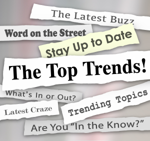 As content marketers, knowing that our readers like to keep up with the trends, we scour websites, blogs, magazines, and newspapers for clues about “what’s happening” in our clients’ fields. Ironically, staying savvy about what’s trending allows us to establish each client as a thought leader, both keeping abreast of – and starting – trends.